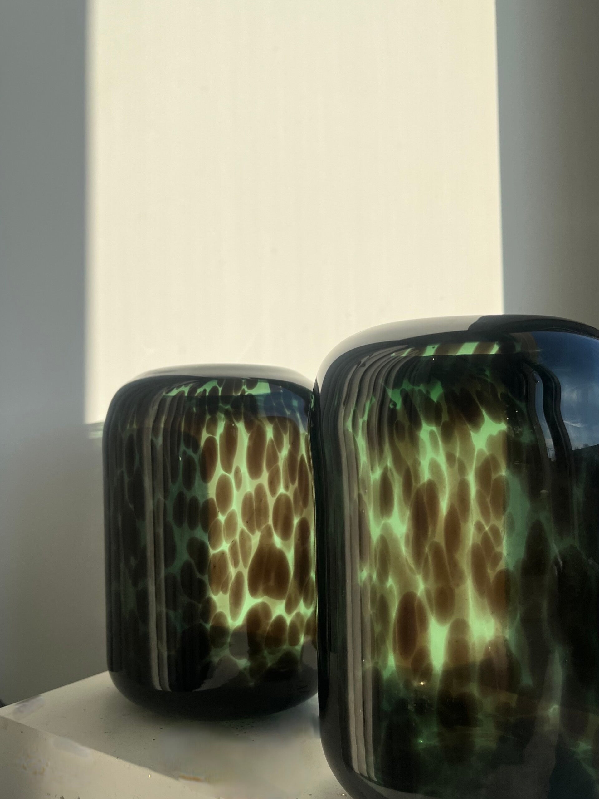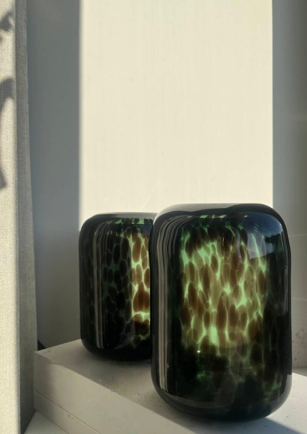 Elk interieur heeft iets spectaculairs nodig. Dit windlicht met groen glas van Mrs Bloom zijn de perfecte sfeermakers en geven altijd mooi licht. Het dessin van dit theelicht lijkt op een luipaard.