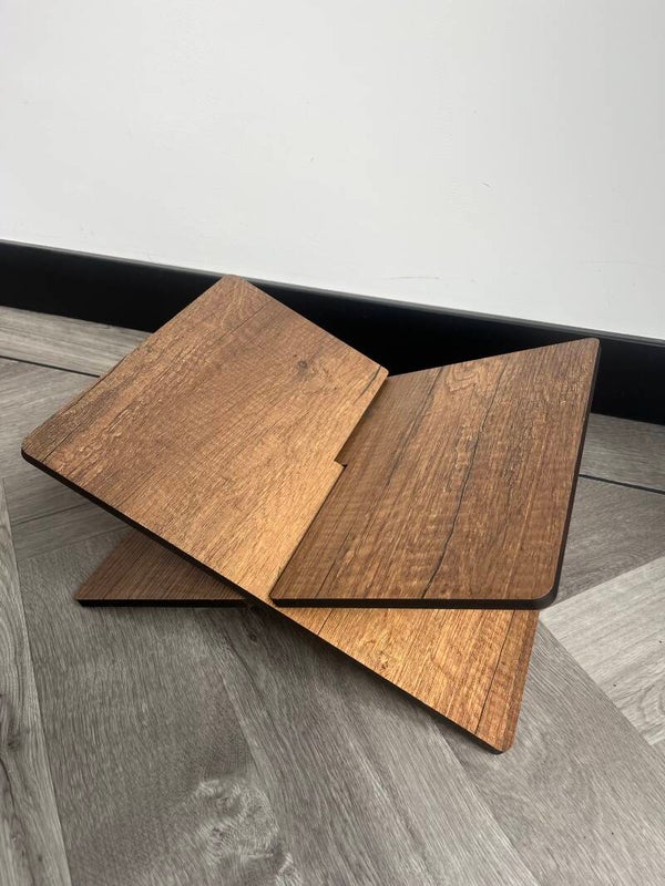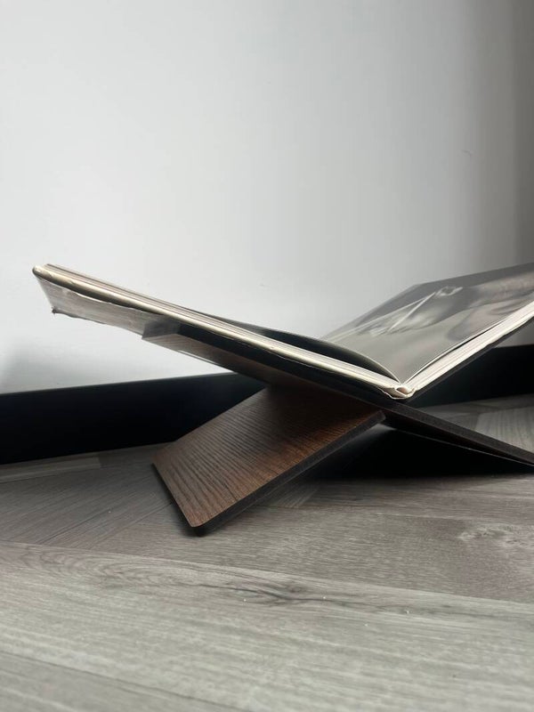 Deze elegante boekenstandaard in warm bruin hout is perfect om je favoriete boek of kookboek stijlvol te presenteren. Dankzij het stevige ontwerp biedt de standaard optimale leeshoek en comfort. Een praktische én decoratieve toevoeging aan elke leeshoek, keuken of werkplek.